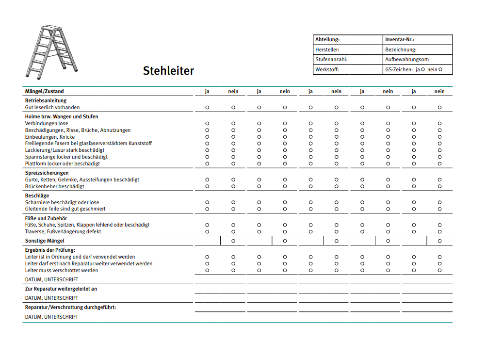 AC20 – Leiterbuch „Prüfprotokoll Stehleiter“